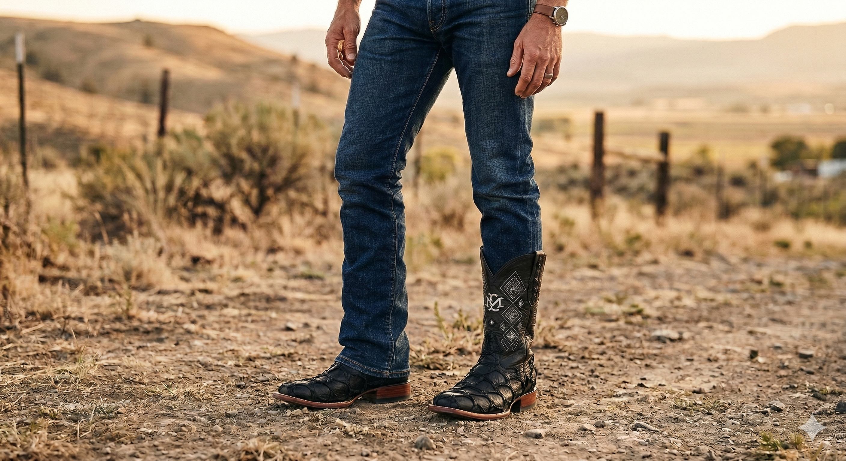 Pirarucu leather cowboy boot square toe